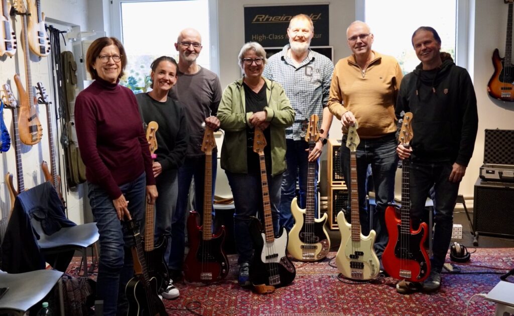 Ralle und Verena kannten sich bisher nur aus der Montags Practice Session in Andys Bass Camp. Beim Konzert letzten Sonntag haben sie sich endlich mal live und in Farbe getroffen. Ich freue mich auf ganz viele solcher Begegnungen bei unseren Bass Community Weihnachtsfeiern. Der Bandleader musste natürlich mit aufs Bild…